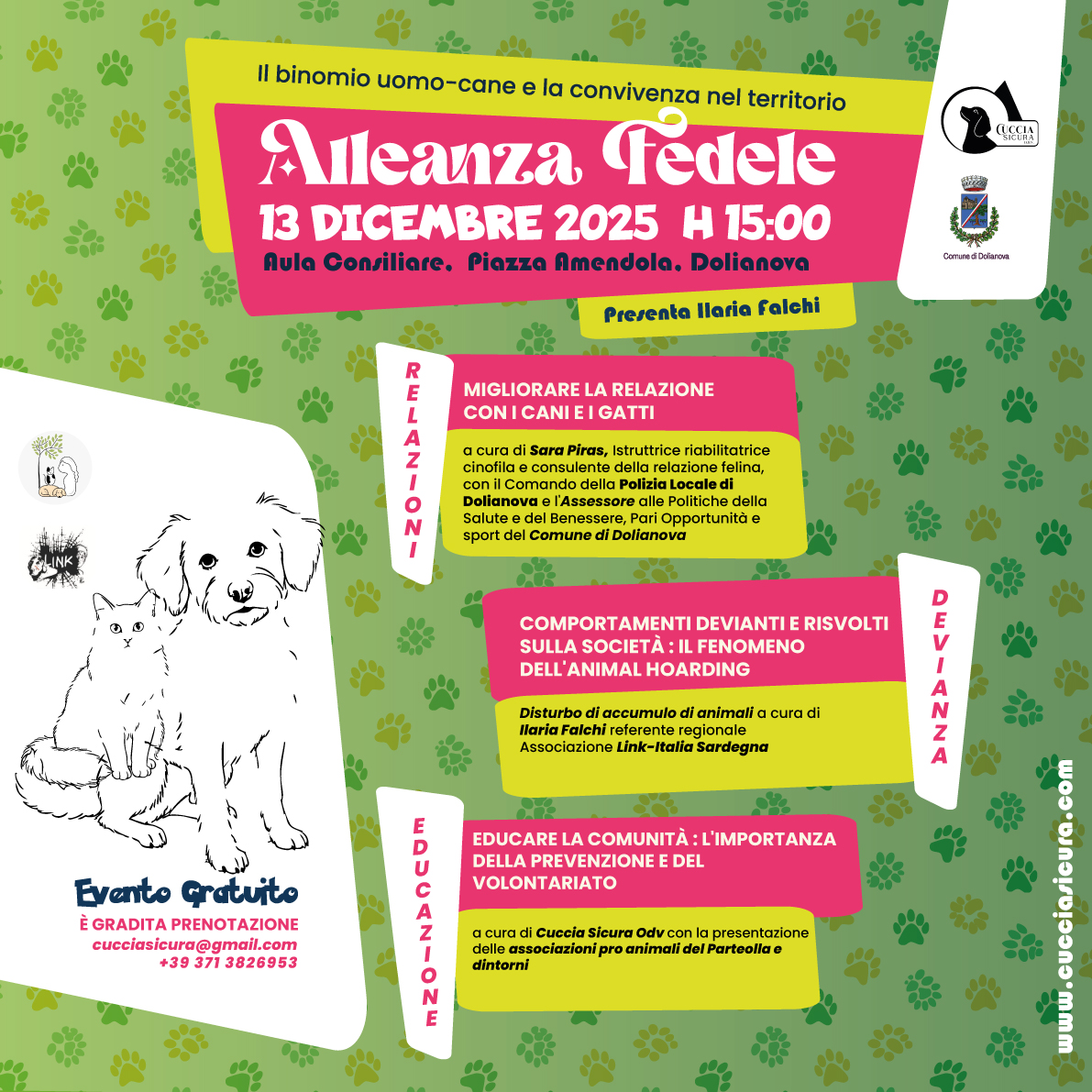 L'evento, promosso dall'associazione Cuccia Sicura Odv con il patrocinio e il contributo del Comune di Dolianova, si terrà Sabato 13 Dicembre 2025, dalle ore 15:00, presso l'Aula Consiliare in Piazza Amendola 4.